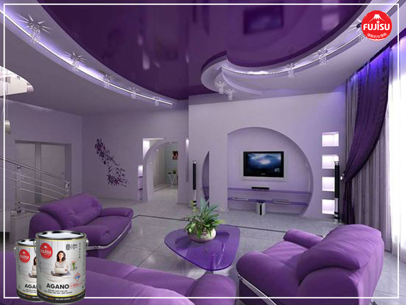 Nếu chủ nhà muốn phòng khách theo phong cách hiện đại thì nên chọn màu tím là màu sơn cho phòng khách. Ngoài sự sang trọng, tinh tế, nó còn mang đến cảm giác về sự giàu có, thành công.